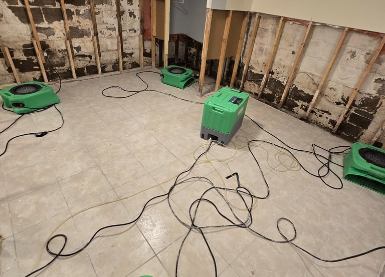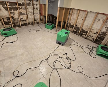 After water removal. we thoroughly dry, dehumidify, and sanitize all affected areas to prevent mold, odors, and structural damage.